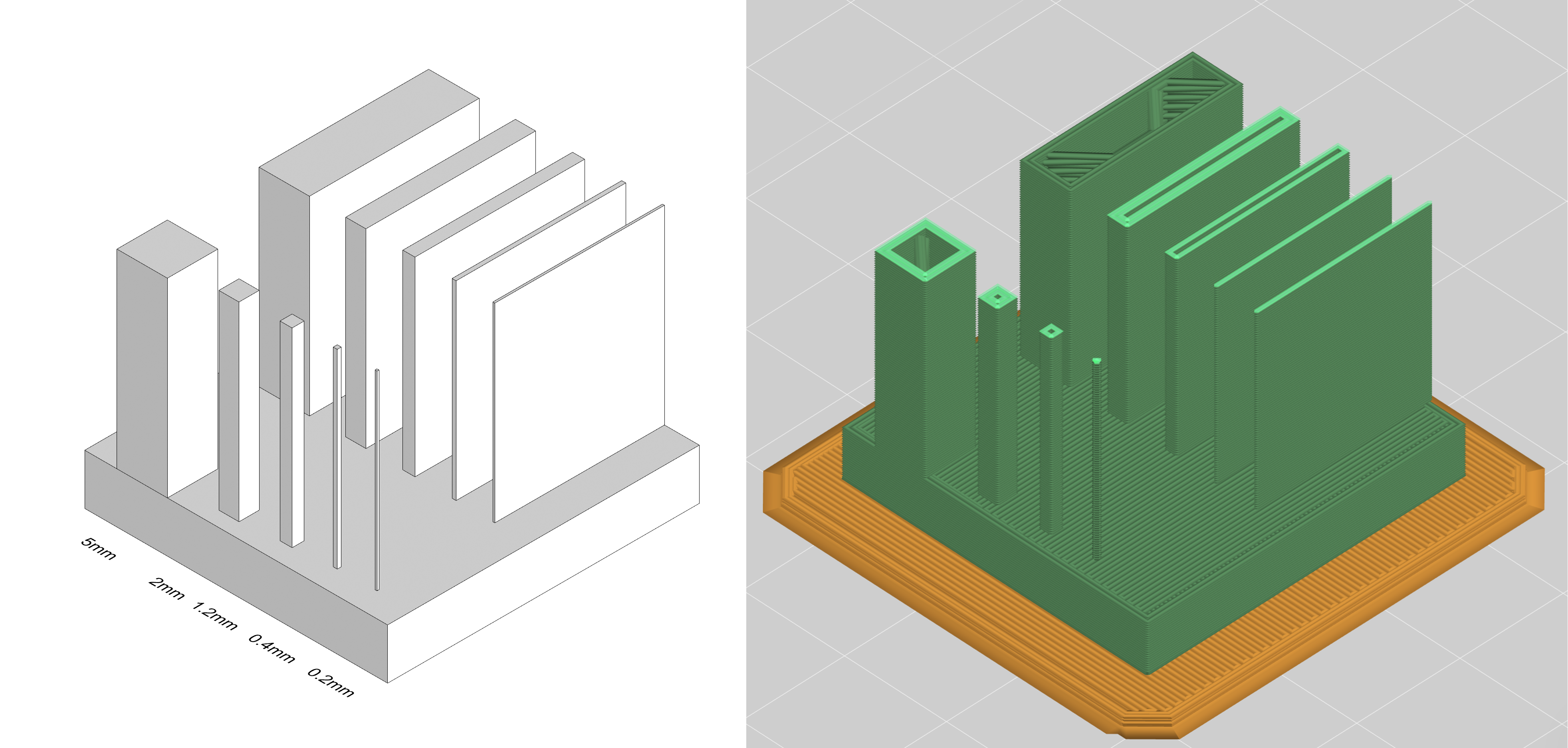 <figure><img src="https://1820679795-files.gitbook.io/~/files/v0/b/gitbook-x-prod.appspot.com/o/spaces%2F-LXautSvCbUco5Lv7YrH%2Fuploads%2FIE3mQIYvuY8ZnlYrJPvT%2Fthickness_kb-.png?alt=media&#x26;token=25242c66-9ca5-4f00-9045-6e9f6f3e72e9" alt=""><figcaption><p>Note how the 0.2mm column does not even get sliced. <br>Even though the smaller elements may get picked up by the printer, they are very fragile! </p></figcaption></figure>