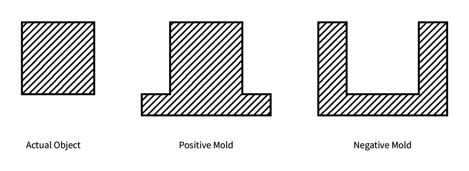 A positive mold is a replica of the desired final product, typically made of a rigid material to ensure accurate replication of the actual object. Whereas a negative mold, on the other hand, is the inverse of the final object, typically made of a pliable/soft material to facilitate ease of demolding.
