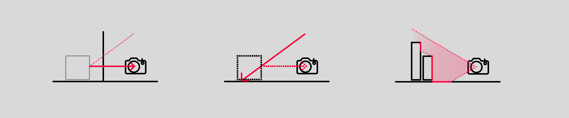 Understanding that the sensors are like 'eyes', it can only see what is in front and nothing 'behind' or 'over' object. Similar to how how you can move your viewpoint to look behind an object, a sensor will need to be physically moved to ensure it can capture information that is occluded beyond the objects.