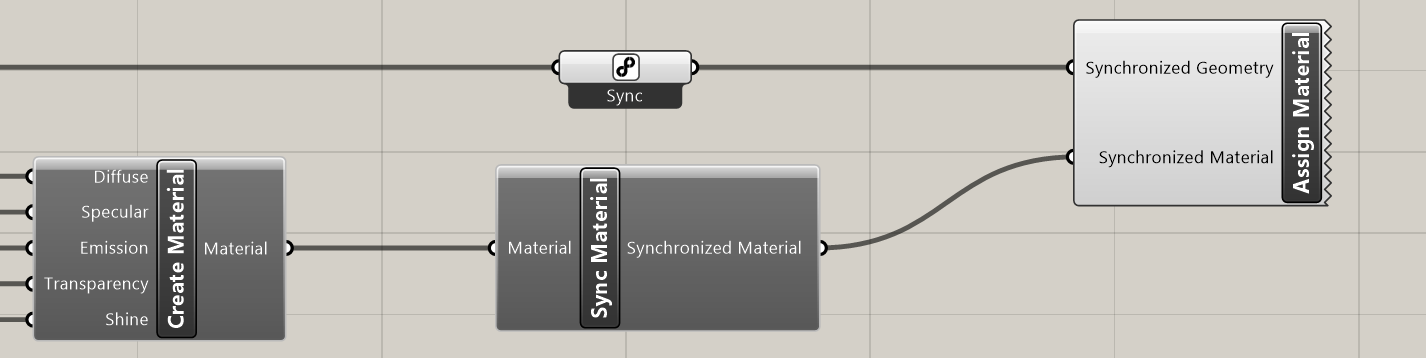 [Get Rhino Material] gets the material of geometry referenced from the Rhino document.