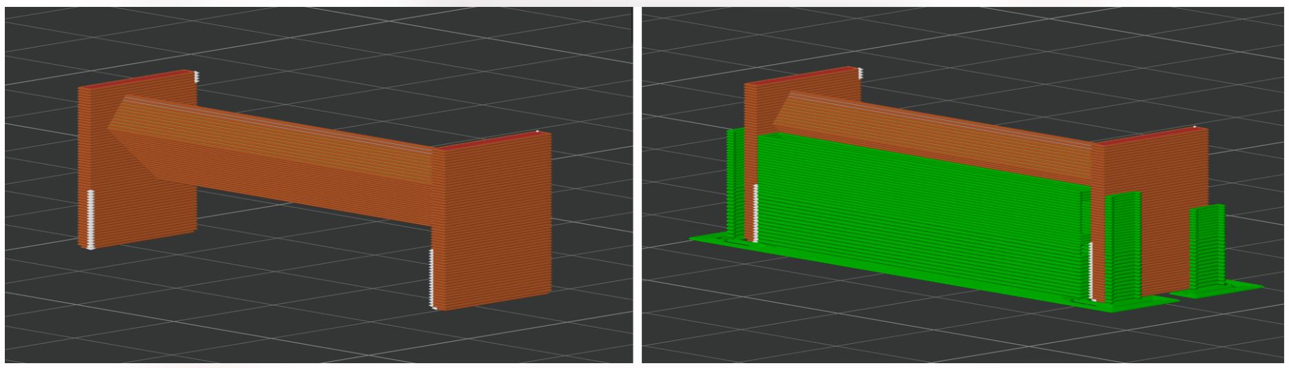 [**Strength**](https://ms-kb.msd.unimelb.edu.au/next-lab/3d-printing/design-guidelines#model-strength): if the part is a functional part, then this takes priority over support material. 3D prints are weakest parallel to the layer lines.